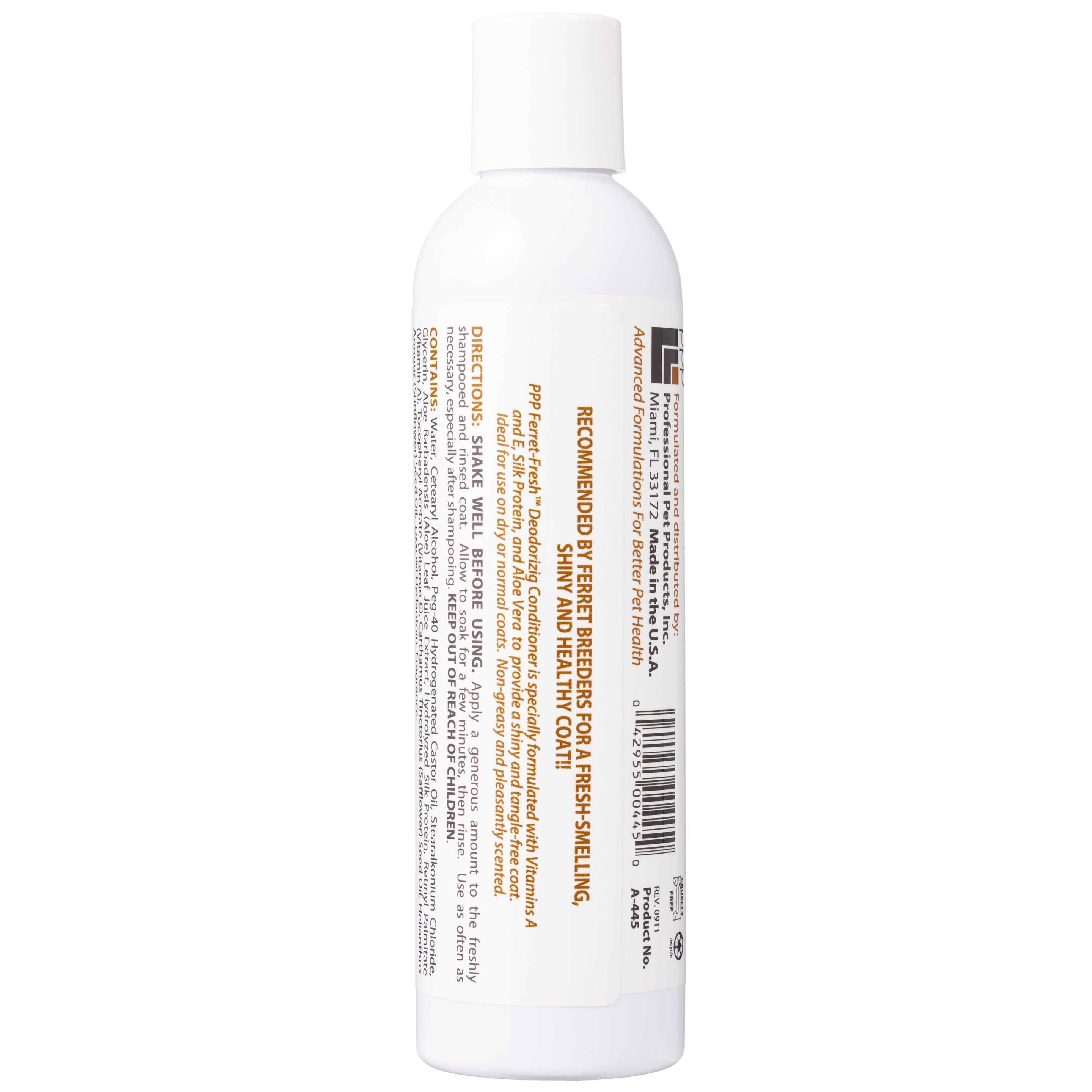 PPP Ferret Fresh™ Deodorizing Conditioner Spray (Product No. A490) is ideal for daily or periodic use between shampoos to control unpleasant odors from glandular secretions, keeping the skin moist and the coat smooth. It has a very pleasant "clean" scent.