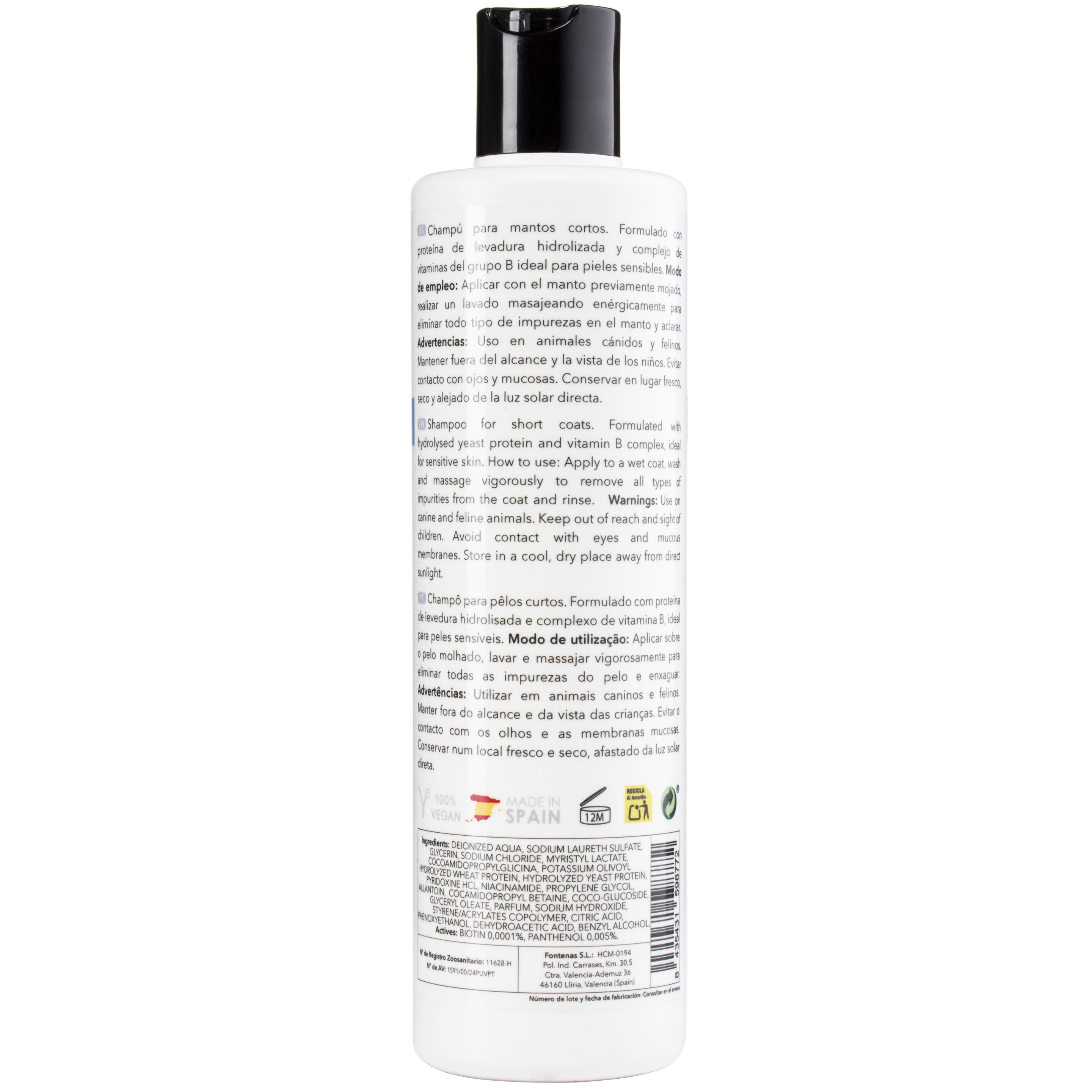 It contains hydrolyzed yeast and keratin proteins. Yeast is a valuable source of B vitamins, such as biotin, niacinamide, and pyridoxine. It also provides zinc, magnesium, potassium, sulfur, iron, copper, and chromium. The shampoo's ingredients penetrate the hair follicles, supporting the growth of healthy, strong hair. Keratin, in turn, ensures your pet's coat is properly moisturized, strong, smooth, and elastic. The addition of glycerin softens and elasticizes the epidermis, preventing moisture loss.