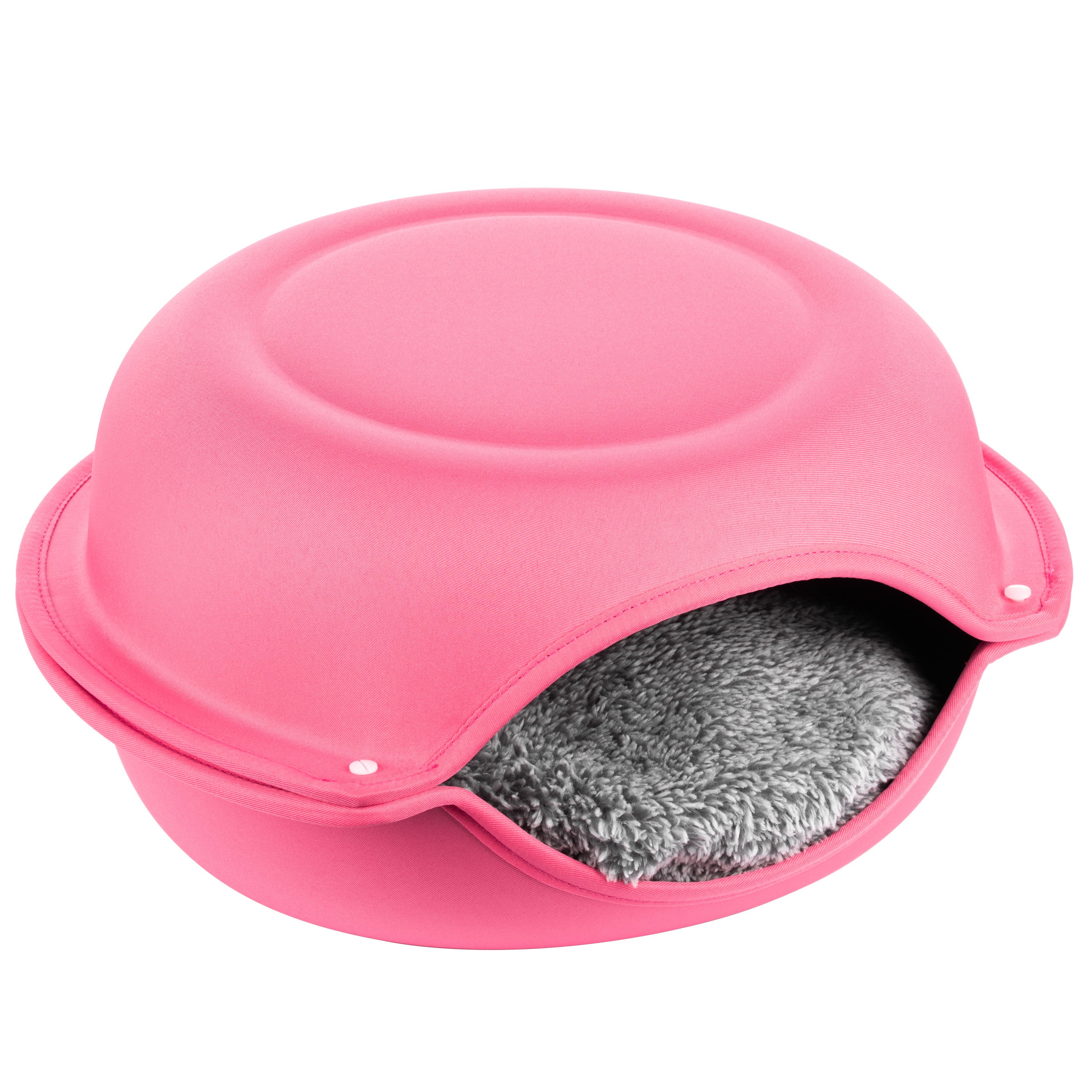 The macaron's frame is made of lightweight and extremely impact-resistant polyurethane, which is also an excellent insulator against the cold. Your kitty will stay warm, even if the house is placed on a cold floor. The macaron's cover is made of smooth polyester fabric, black on the inside and candy pink on the outside. The combination of these two colors makes the whole thing look incredibly attractive. The macaron's surface can be cleaned by wiping with a damp cloth.