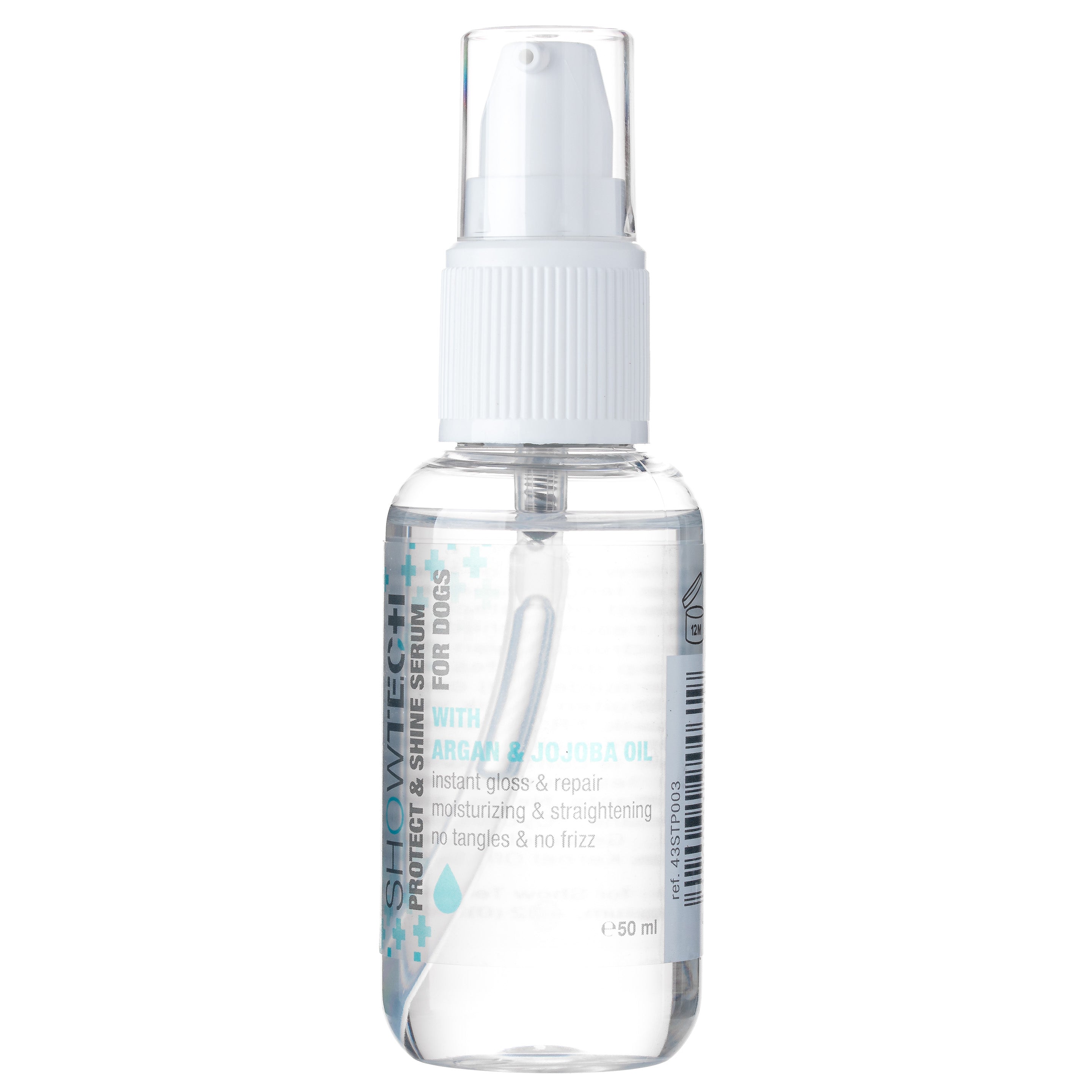 As you can see, this is an exceptional product with a broad spectrum of benefits. Instead of using multiple products, simply use one. Its ingredients include natural argan and jojoba oils, which strengthen hair follicles, prevent hair loss, repair split ends, moisturize the scalp, and restore hair's shine and luster. They also accelerate hair follicle regeneration and soothe irritation. The serum comes in a convenient pump bottle, making application much easier. Every professional groomer and pet owner will love Show Tech Pro Protect & Shine Serum, and not just for its delicate, pleasant scent.