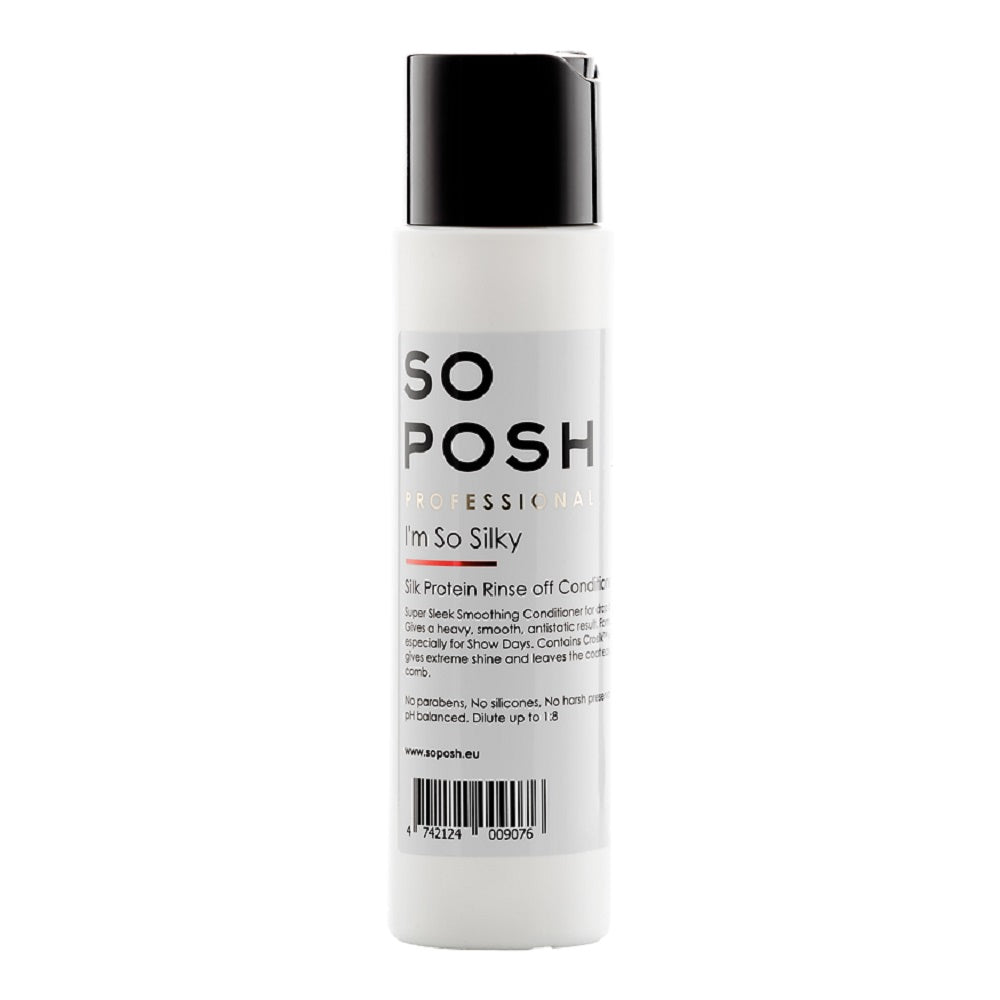 So Posh I'm So Silky Conditioner is a conditioner designed for show dogs with long, flowing coats, providing a smooth, shiny finish with antistatic properties.