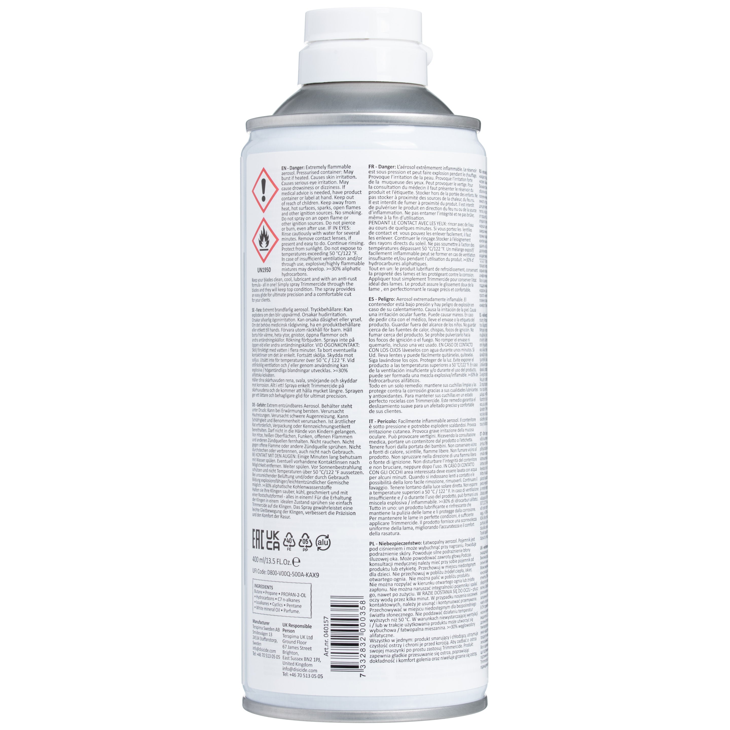 Trimmercide Blade Spray 4 in 1 provides optimal lubrication of the head, reducing friction during use without greasing the blades. Its cooling properties make it the perfect solution for protecting the blade during long sessions. Thanks to it, you can get back to cutting in seconds, without having to replace the blade. It contains an anti-corrosion agent that prevents rust. Regular use of the product helps keep your clippers in good condition and extends their lifespan. Unlubricated, dirty blades exert greater resistance, which increases their operating temperature and, as a result, causes them to wear out faster.
