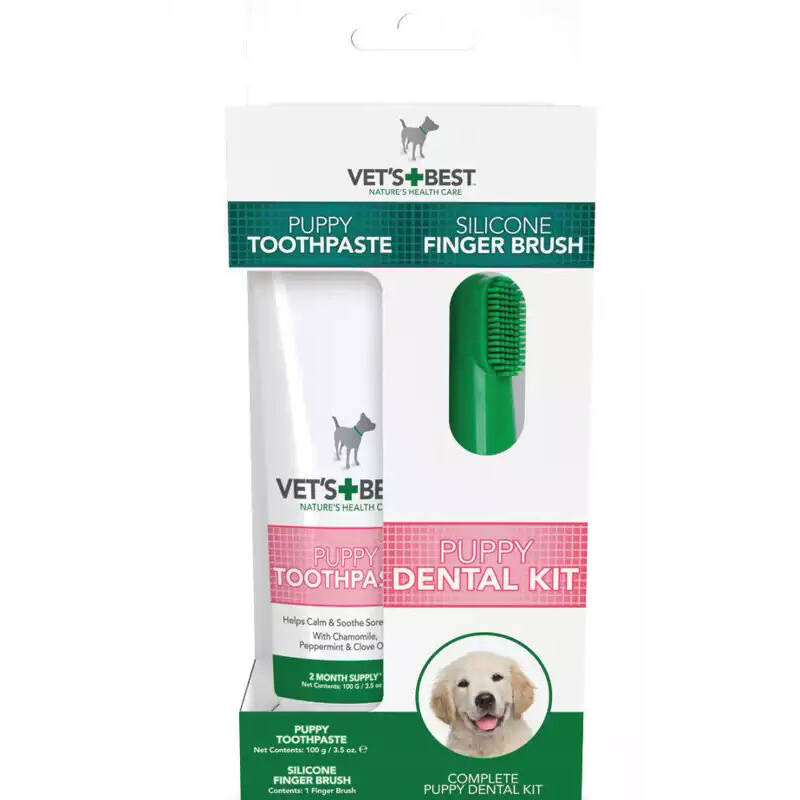 Vet's Best Puppy Toothpaste Dental Kit – Gentle Enzymatic Formula with Finger Brush Included