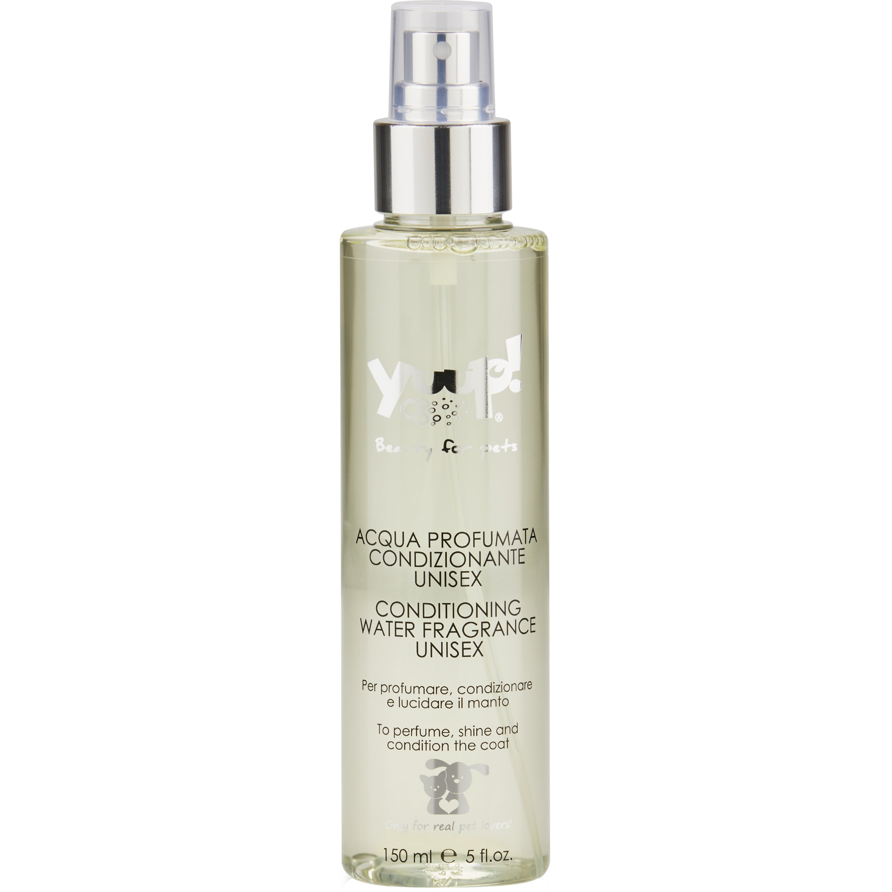 Yuup! Home Conditioning Perfume Unisex (150ml): Alcohol-free, perfumed, lightweight conditioner enriched with quaternary keratin, which nourishes the coat, adds shine, and detangles it. It moisturizes your dog's skin and has a pleasant, universal scent of talc and white musk.
