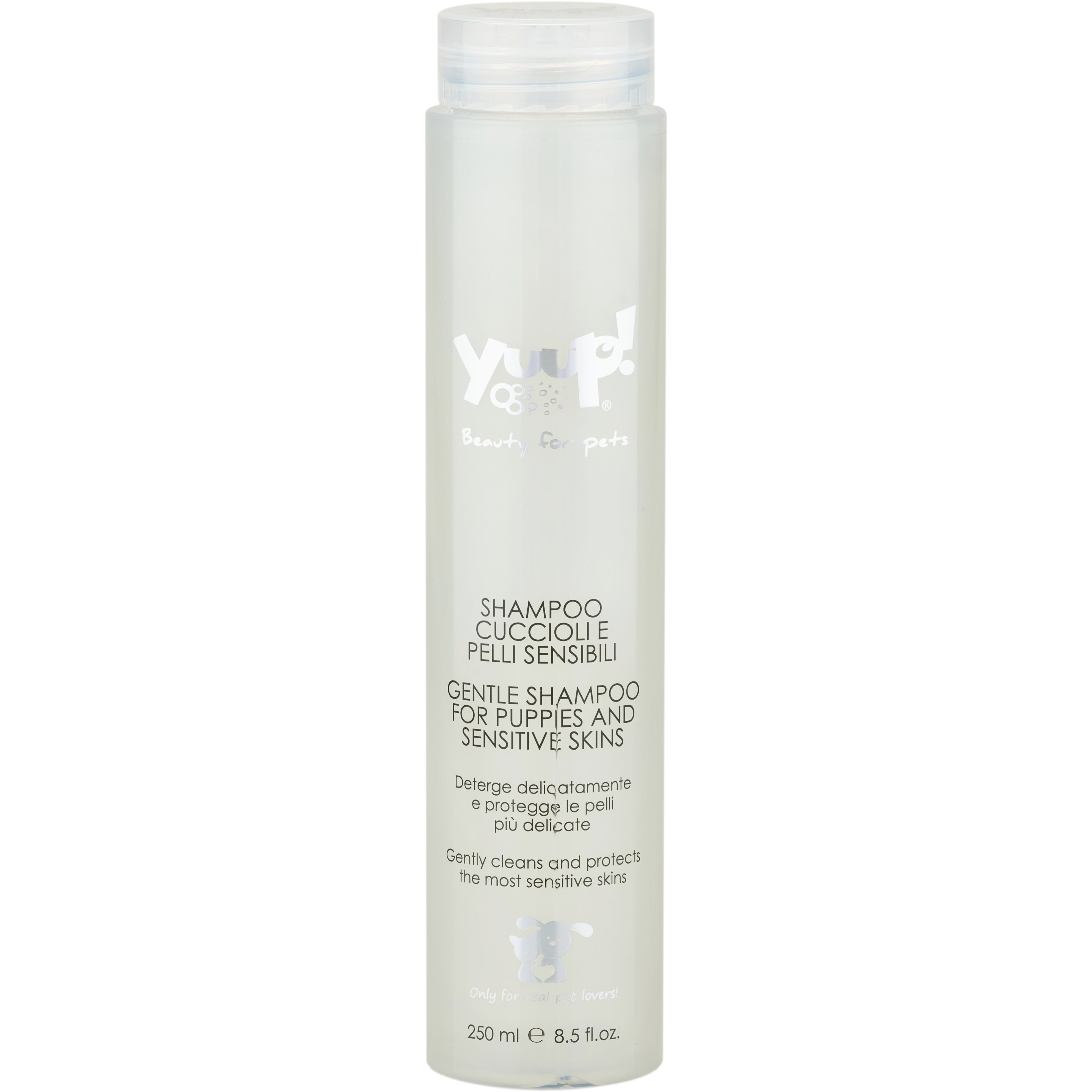 Yuup! Home Gentle Shampoo for Puppies (250ml): Shampoo for puppies and pets with sensitive skin. Contains milk and rice proteins, vitamins C and E, panthenol, and green tea and honey extracts to nourish the coat and soften the skin. Suitable for dogs and cats.