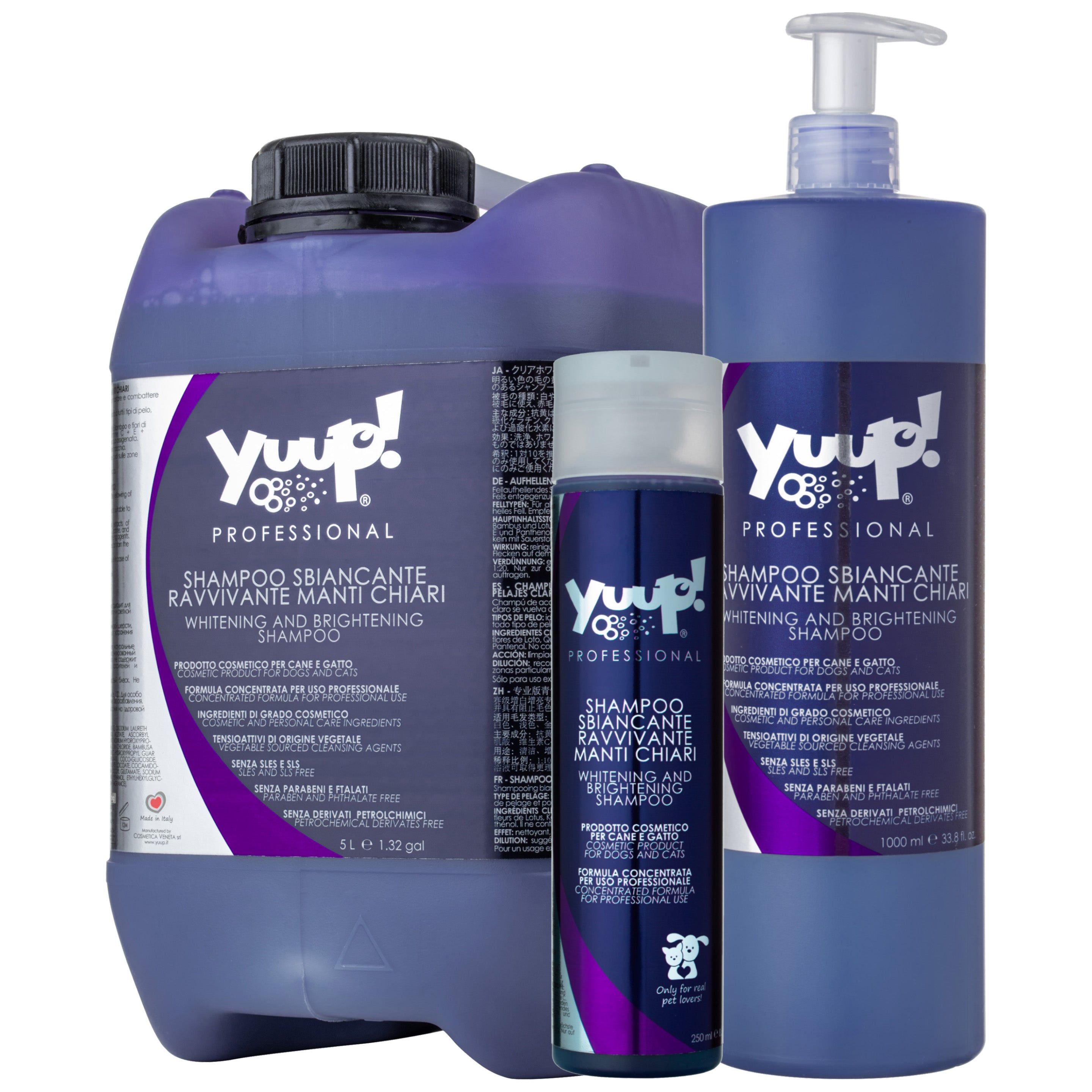 Yuup! Professional Whitening & Brightening Shampoo is a professional shampoo designed to whiten and brighten coats in dogs and cats with white and light-colored fur.