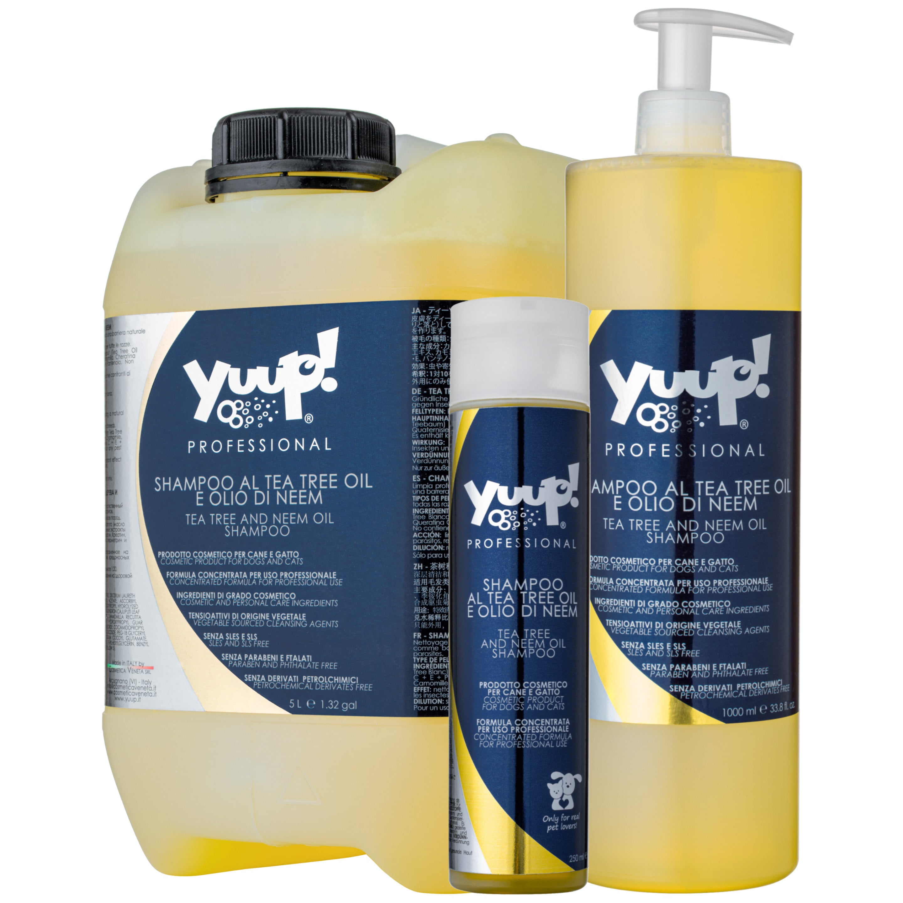 Yuup! Professional Tea Tree and Neem Oil Shampoo is a professional shampoo for dogs and cats, formulated with plant-based ingredients that provide natural protection against fleas, ticks, mosquitoes, and flies.